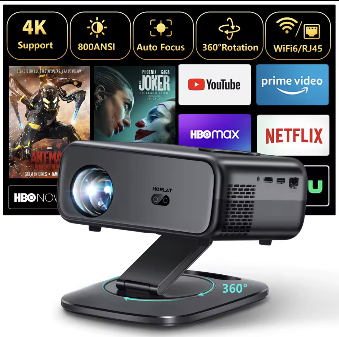 HORLAT M4 25000 Lumen Draagbare Projector Android12 Mini Projector 4K 64G Autofocus Keystone Full HD 1080P 3D Home Theater WiFi6