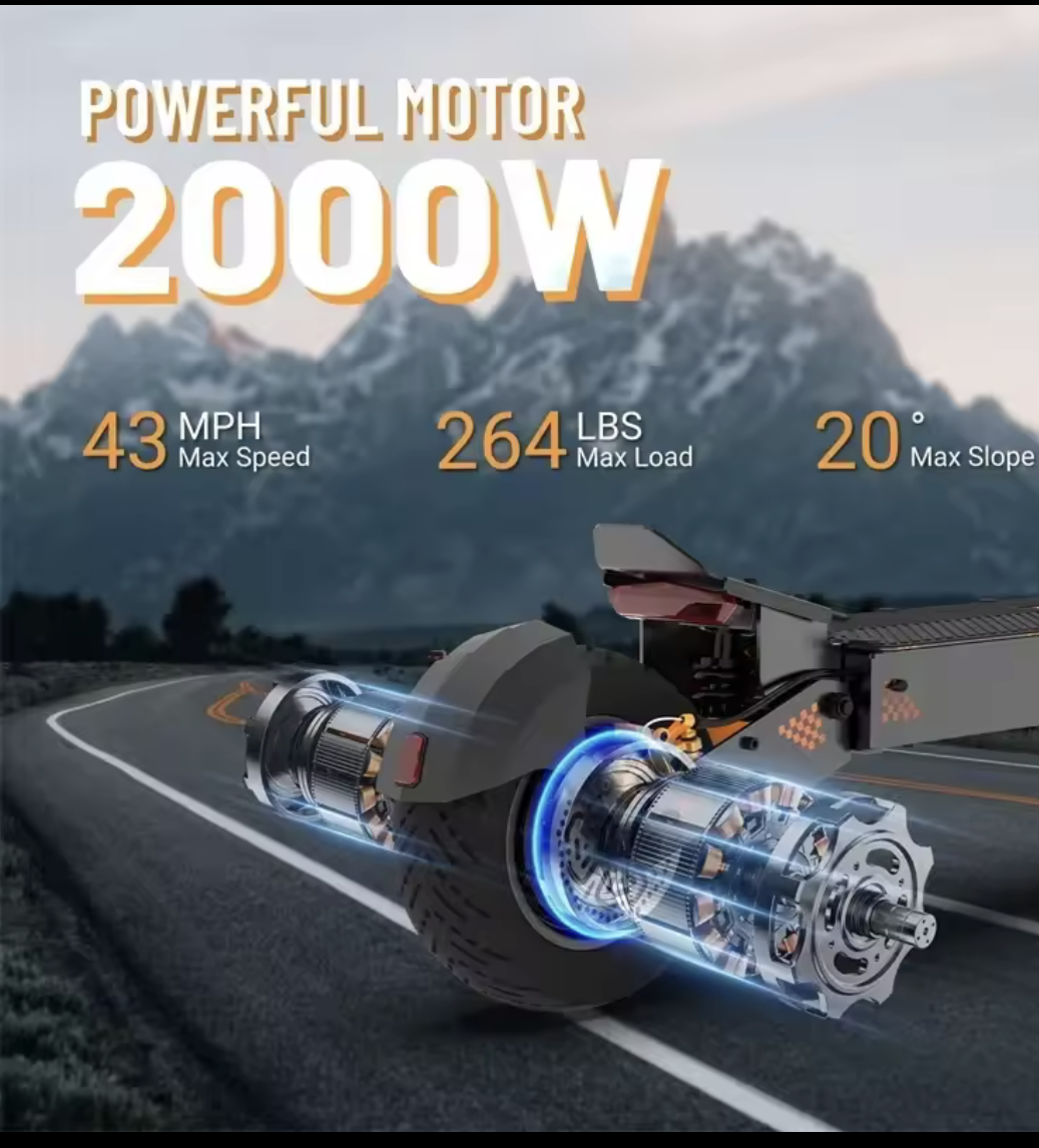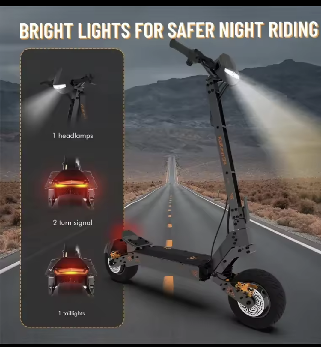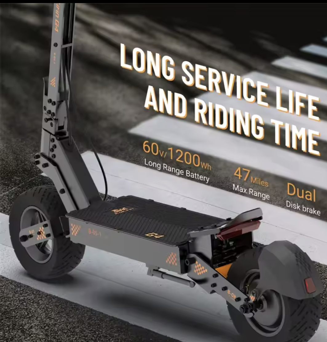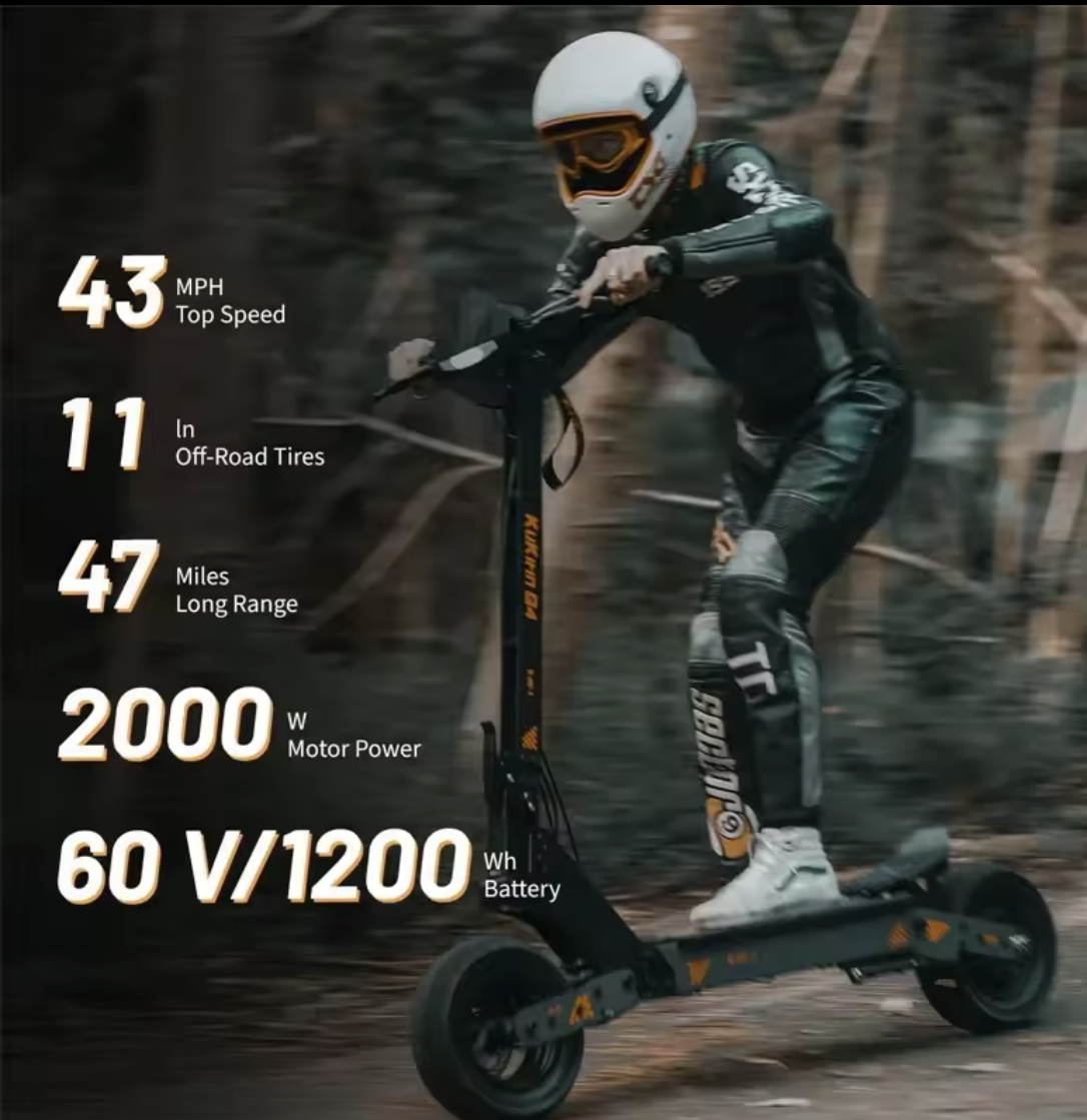 Versie uit 2025 KuKirin G4 scooter, 2000 W motor, 60 V 20 Ah batterij, 11 inch band, 70 km/u maximale snelheid, 75 km bereik, schijfremmen