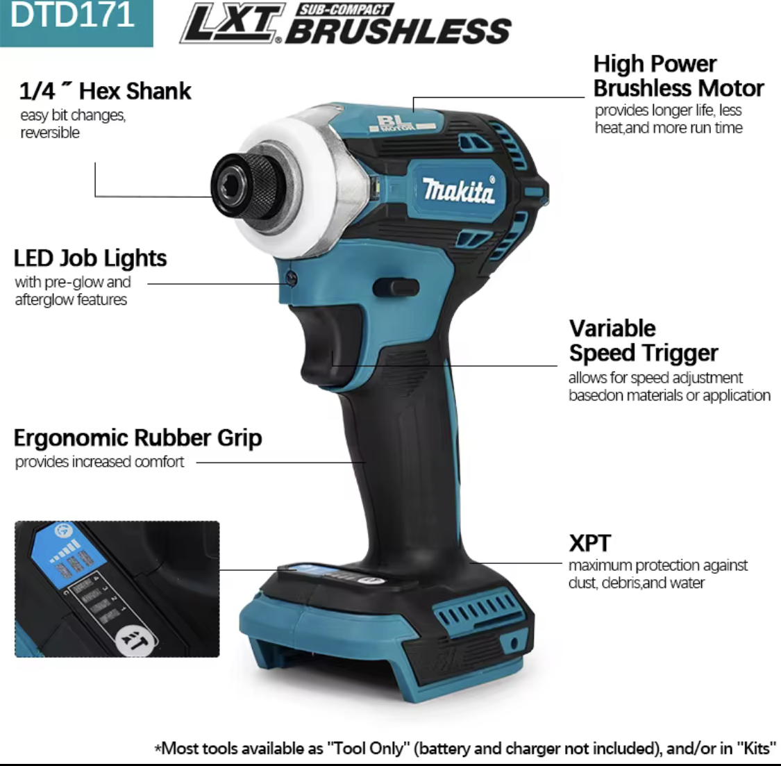 Makita DTD171 borstelloze motor slagschroevendraaier schroevendraaier draadloze oplaadbare boormachine elektrisch gereedschap voor 18V batterij