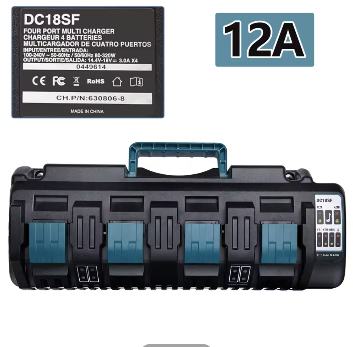 Makita acculader 14,4 V-18 V LXT lithium-ion 4-poorts acculader snellader met dubbele USB-poort 8A/12A oplader voor elektrisch gereedschap Spanning/stroom/vermogen/kortsluiting/hitte/bliksembeveiliging Compatibel
