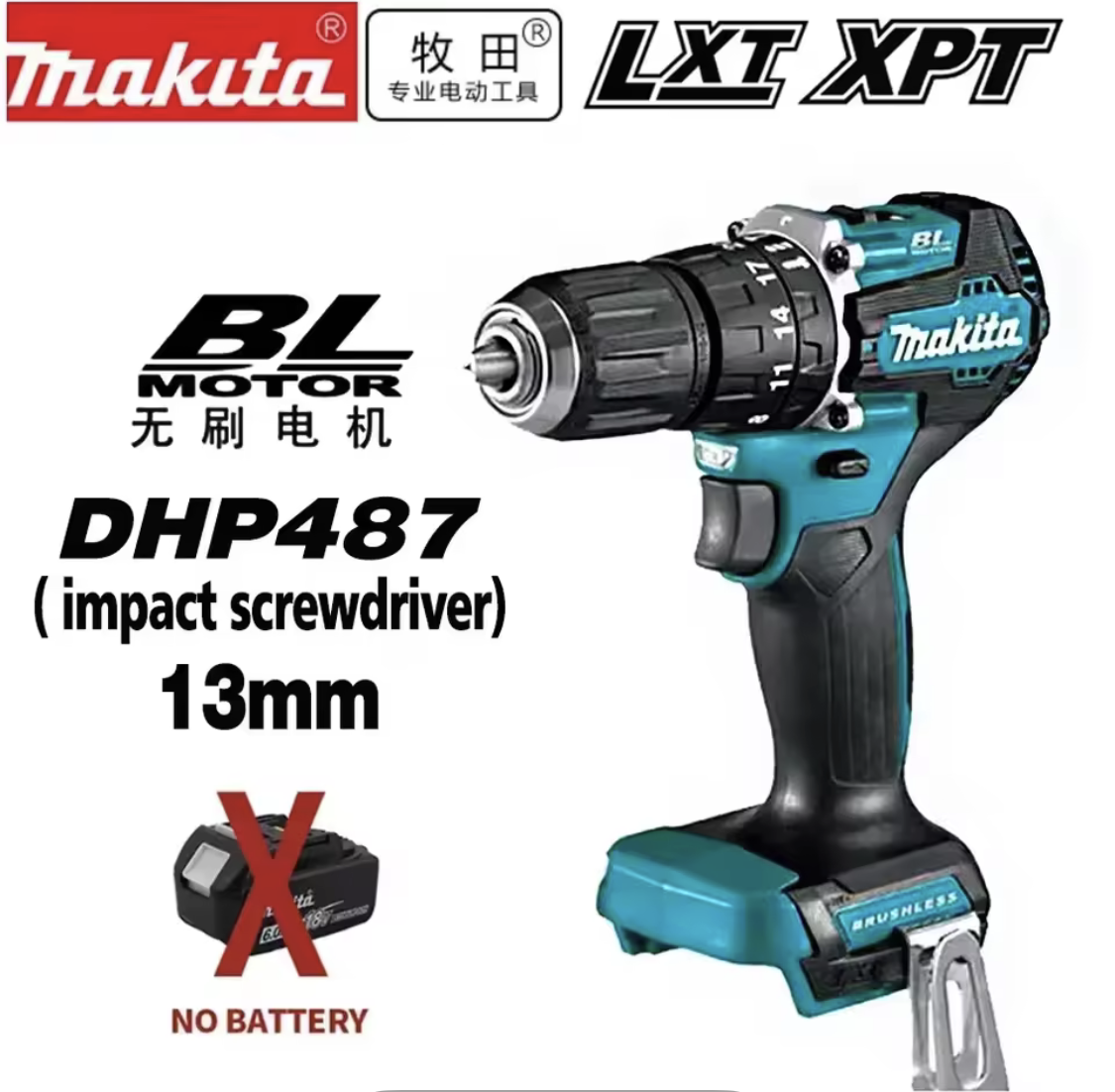 🏆 🥇 NIEUWE Originele Makita DHP487 Accuschroevendraaier boormachine Borstelloze Elektrische Slagschroevendraaier 18V Oplaadbare Power To
