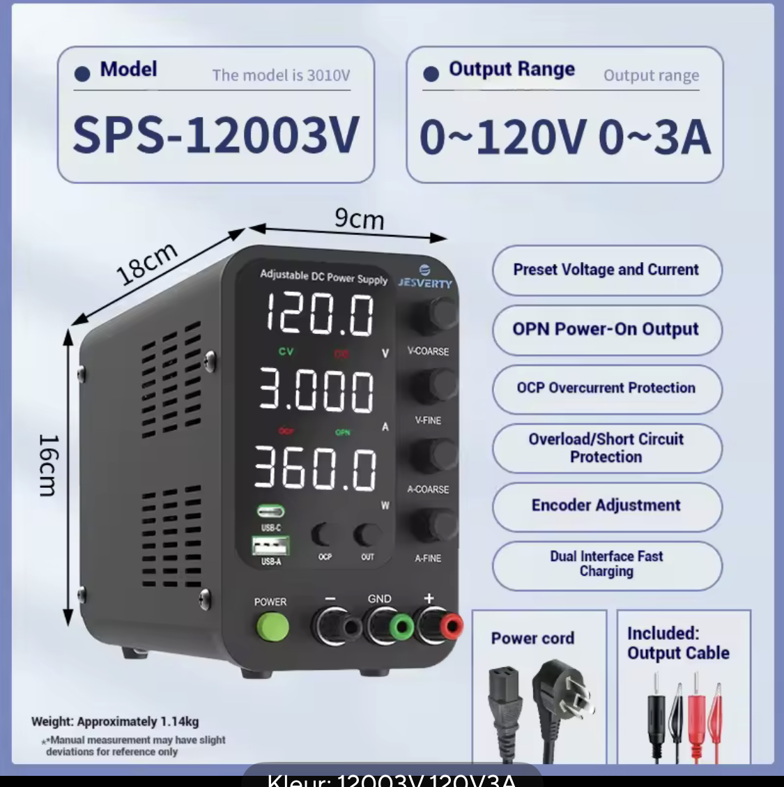 Jesverty DC Lab Voeding 30V 60V 120V Bench Voeding Encoder Reguleert Spanning en Stroom Dubbele Ingangsspanning 220V/110V