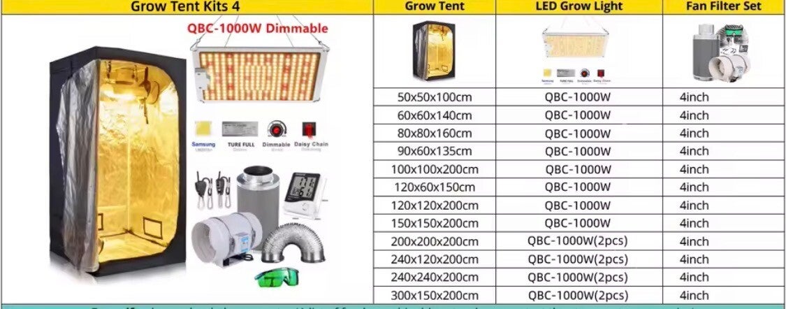Kweektent Growbox Hydrocultuur kweeksysteem Led Grow Plant Lights Volledige kits Hoge PPFD 4 inch kanaalventilatoren Actieve koolfilter