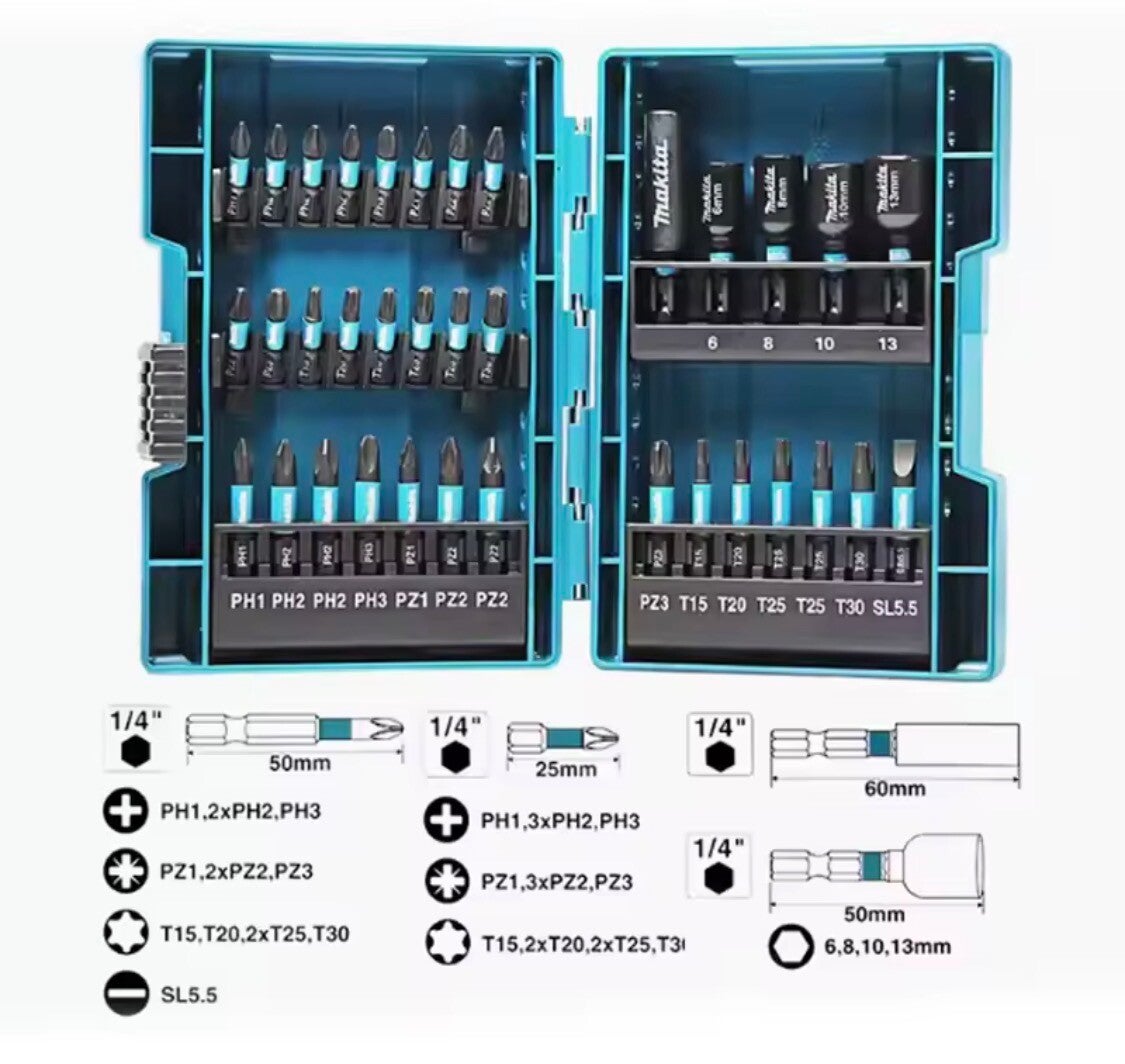 MAkita E-06638 Slagschroevendraaier Bit en Socket 35PCS Hex Shaft Hexagon Schroevendraaier Hoofd Mouw Set Tool Accessoires